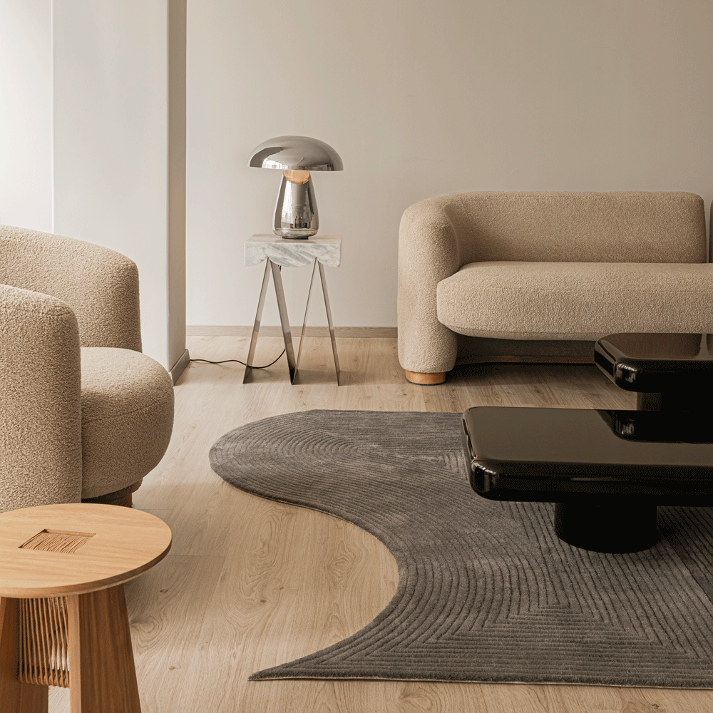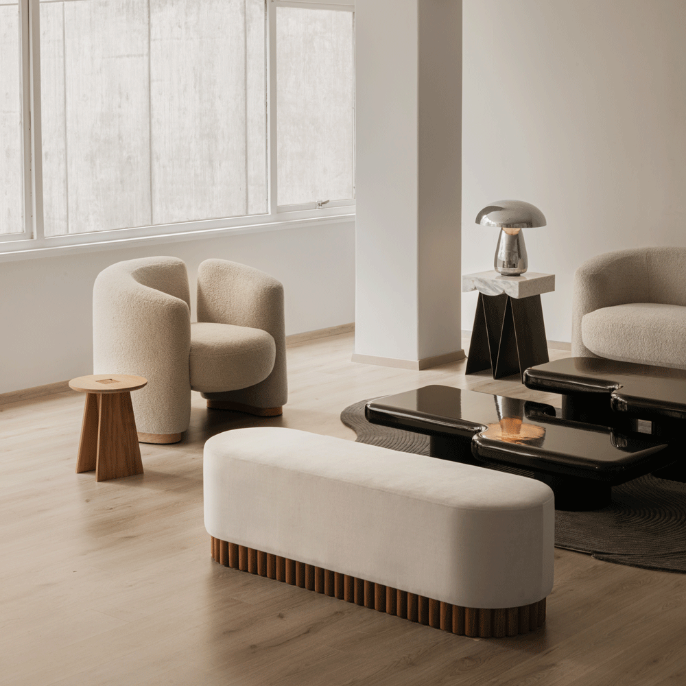 Aleante, a curated collection where the experimentation with materials and textures in furniture and space design creates a cutting-edge, futuristic, and elegant ambiance.