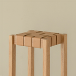 Material: Solid wood and woven seat available in paper cord or reclaimed leather.