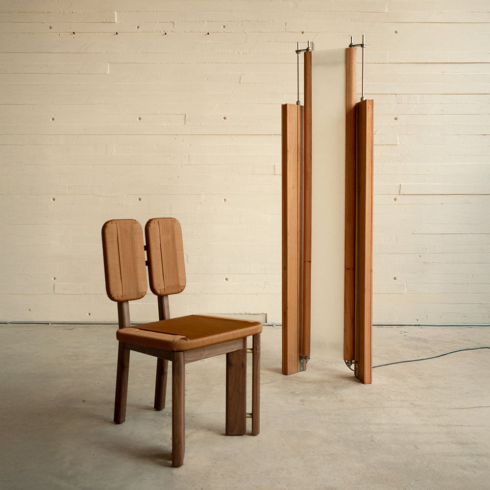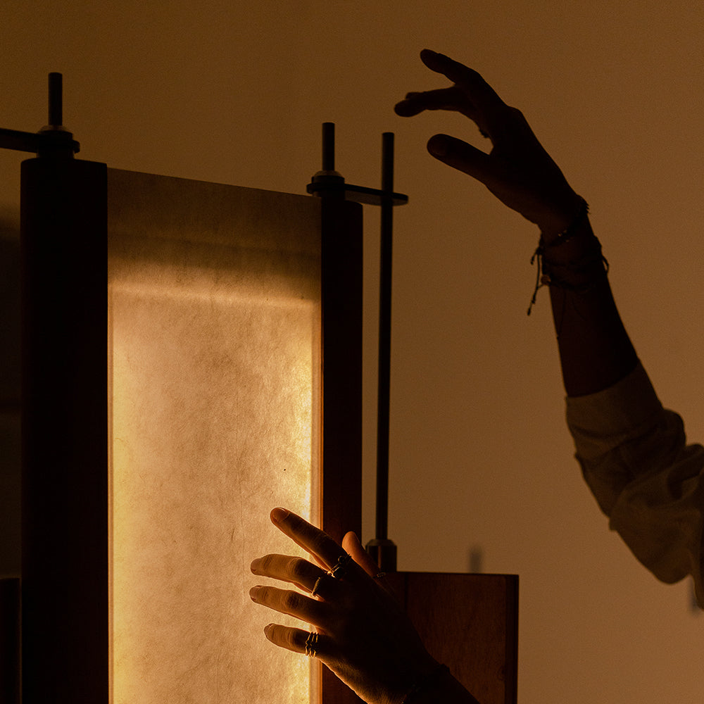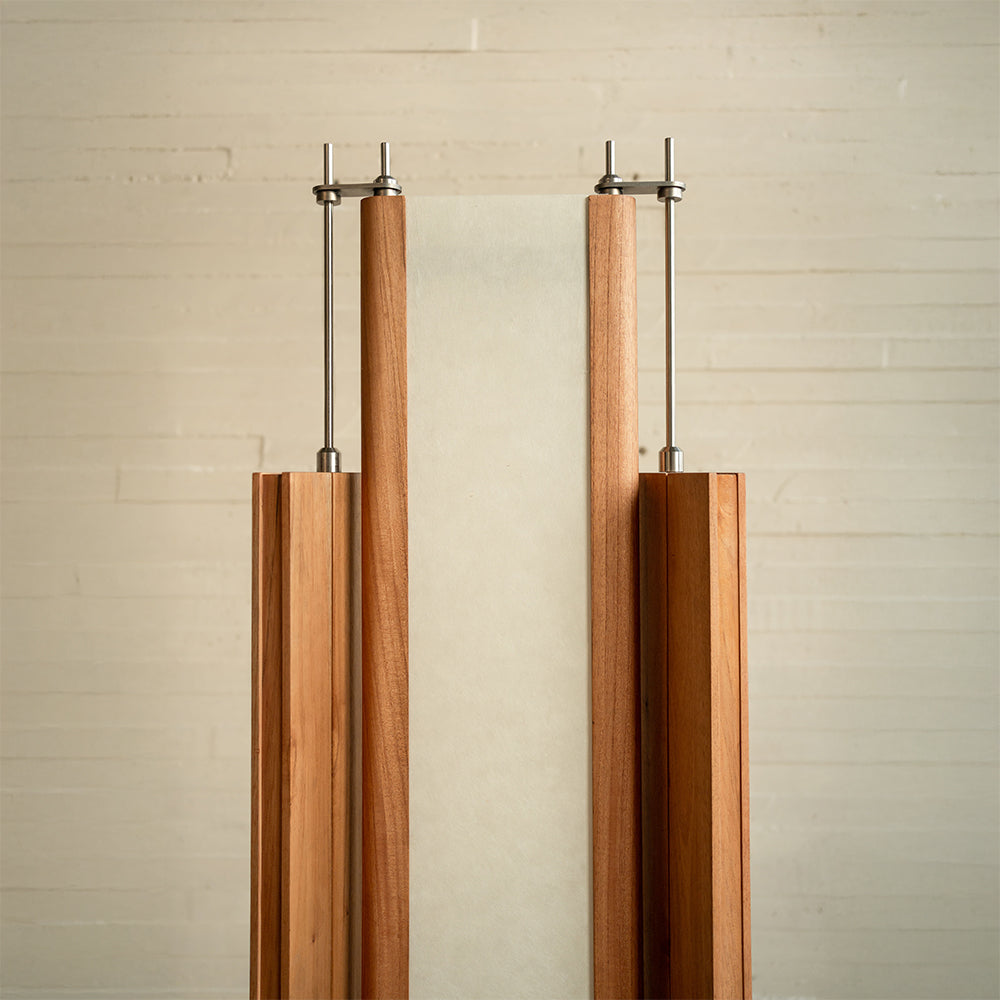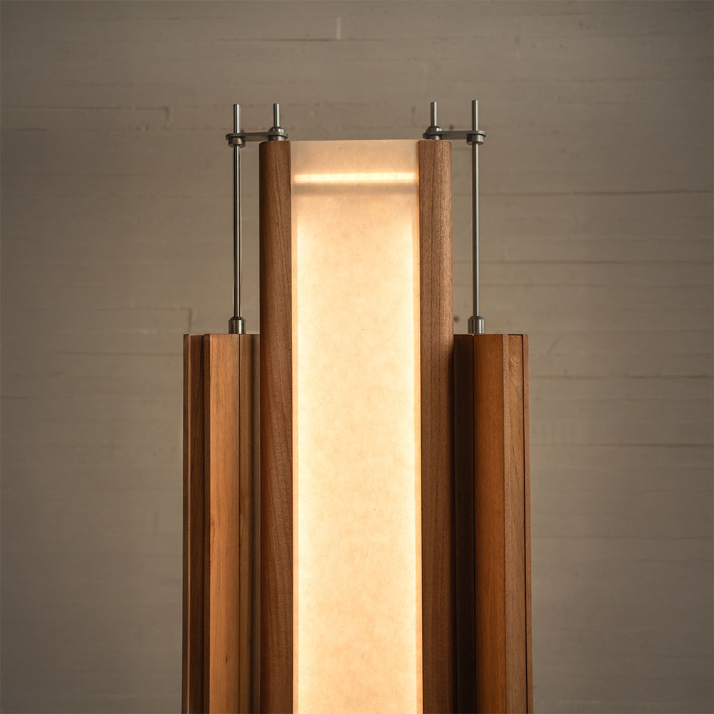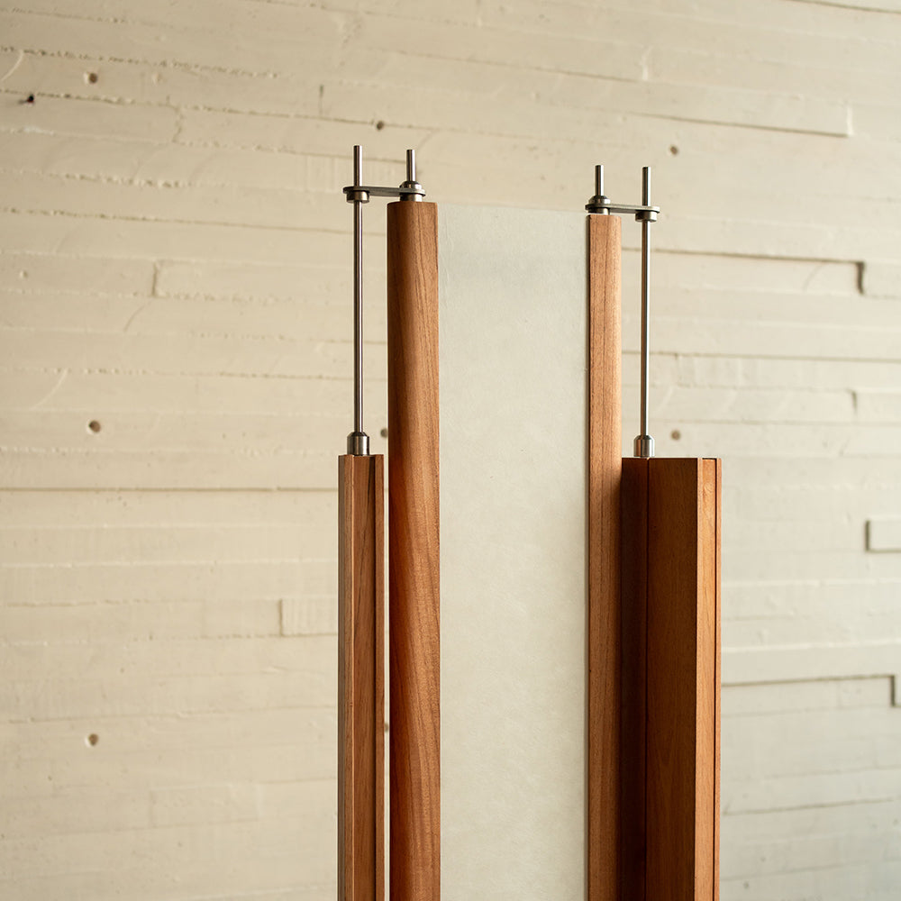 Material: Cedar wood, stainless steel metalwork, acrylic shade with Japanese haini kozo paper.