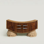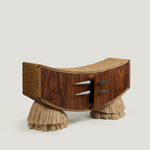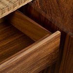 Material: Solid huanacaxtle wood. Handcrafted doors and legs wrapped in henequén fiber. Handles made of steel. Structure wrapped in rattan weave.