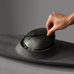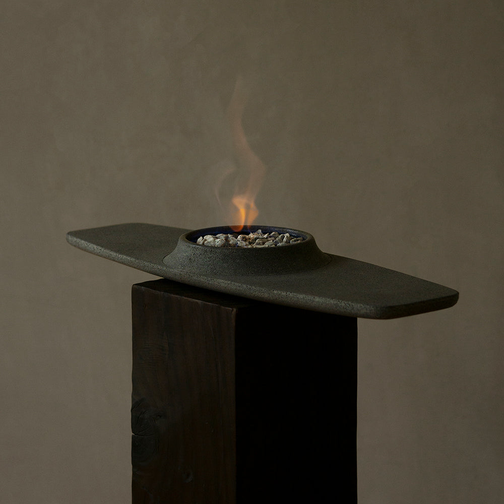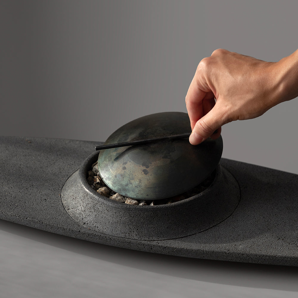 Material: Matte polished volcanic stone and blued steel plate.