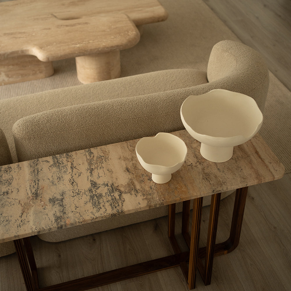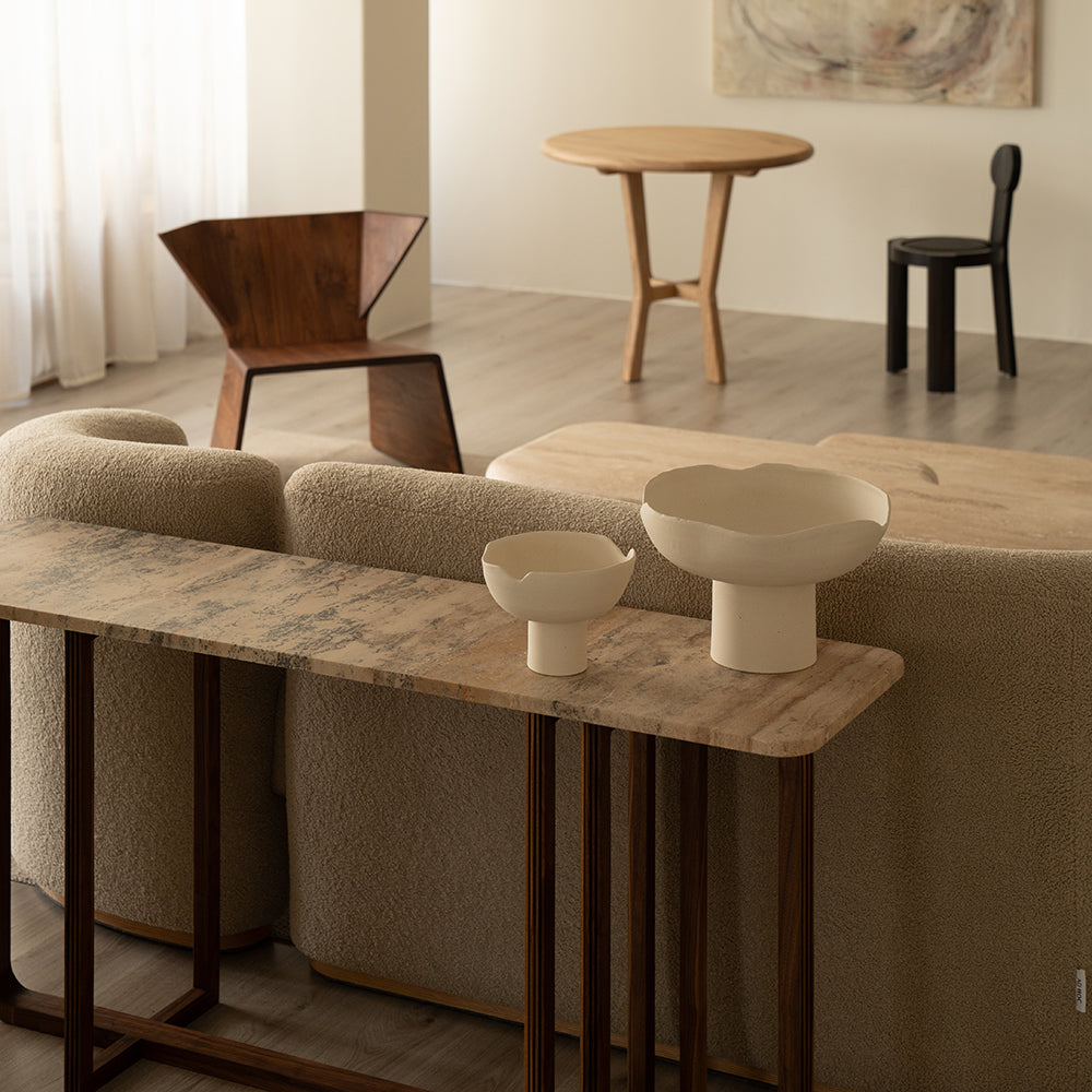 Pieces fabricated in wood, marble or stone are subject to variations in grain and tone as they are natural materials.