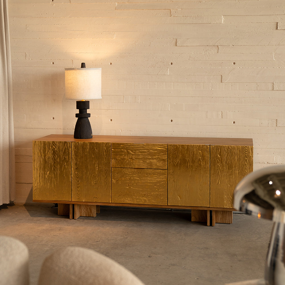 When burnt using the Japanese technique Shou sugi ban, the wood grains become apparent and the cracks randomly appear in the solid trunk. Hence, Mezquite's perfection is achieved with imperfections.