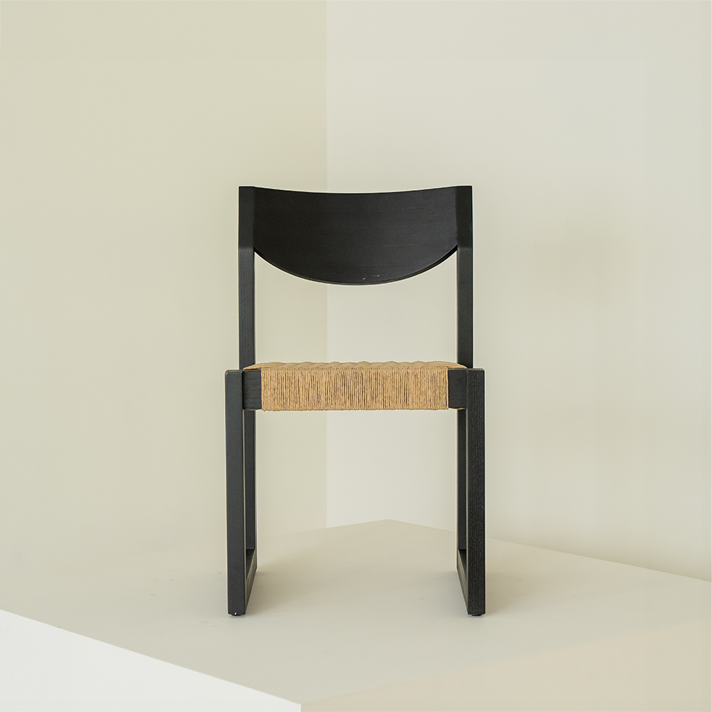Material: Solid wood and woven seat available in paper cord or reclaimed leather.