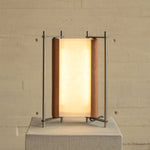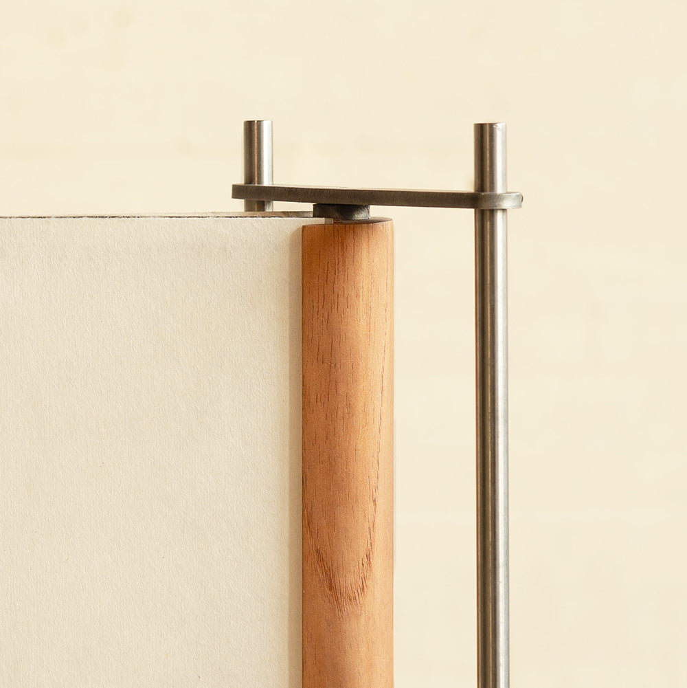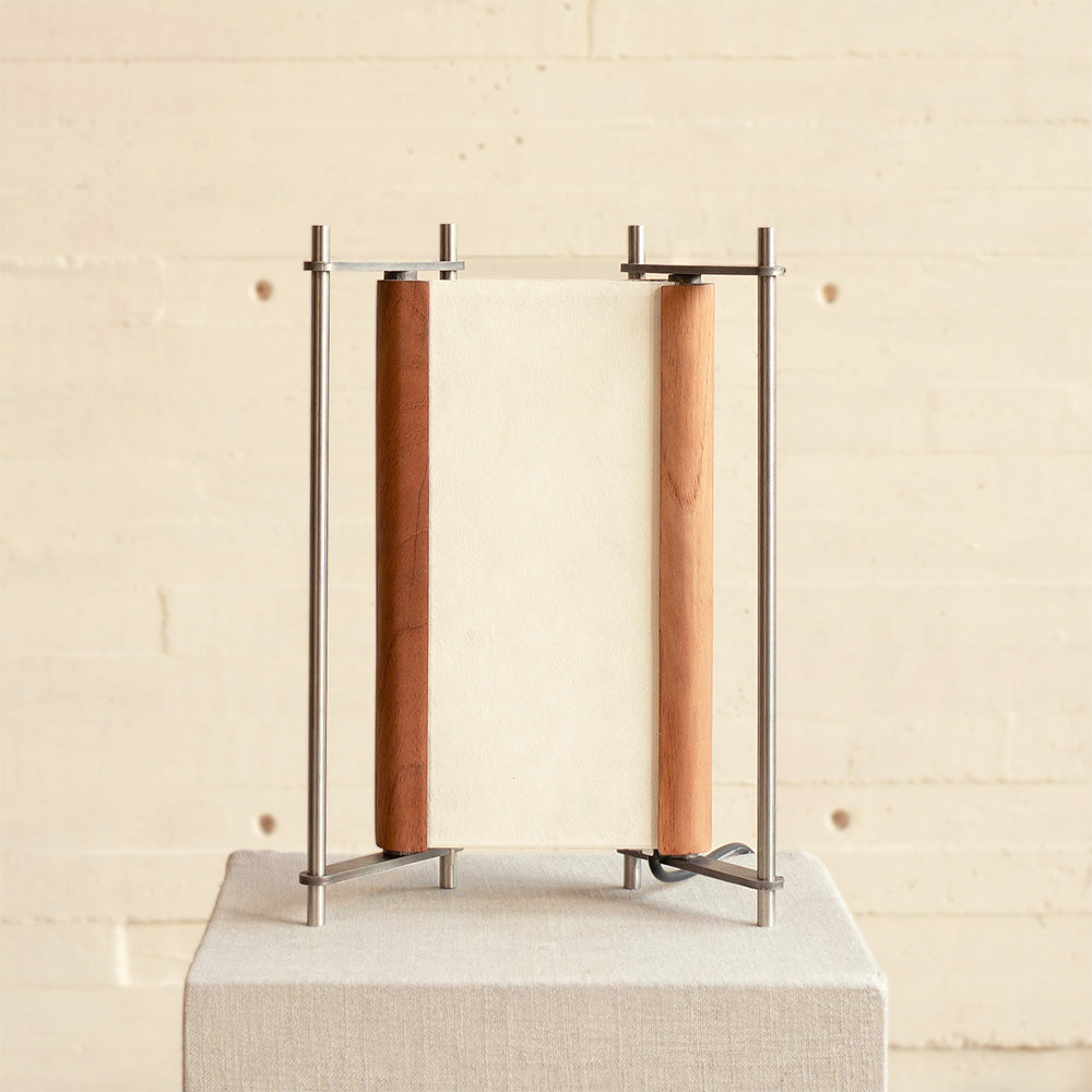 Material: Madera de cedro, herrería en acero inoxidable, pantalla de acrílico con papel haini kozo japonés.
