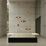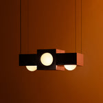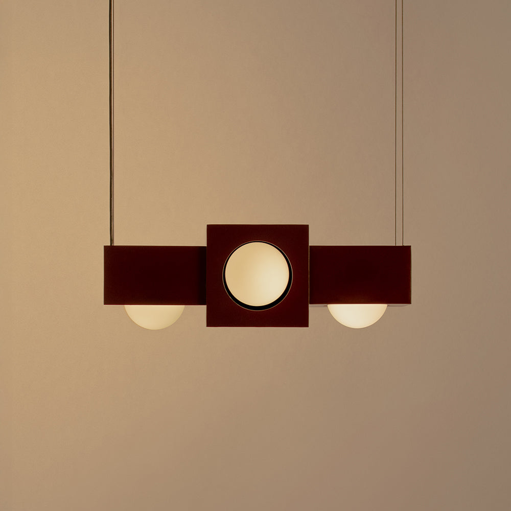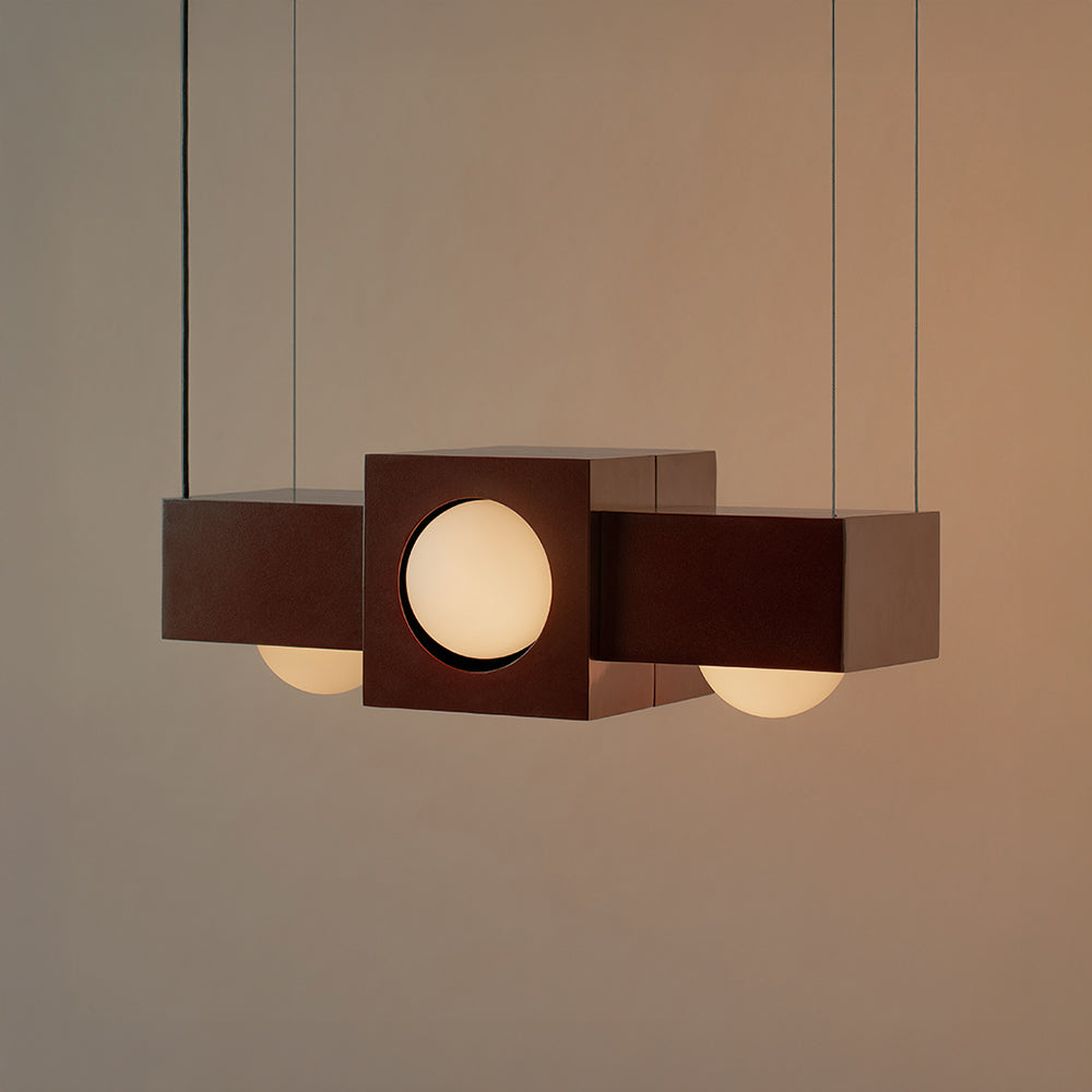 Material: La luminaria colgante CORE 40 se conforma de cuatro cuerpos prismáticos hechos en acero con pintura electrostática.
