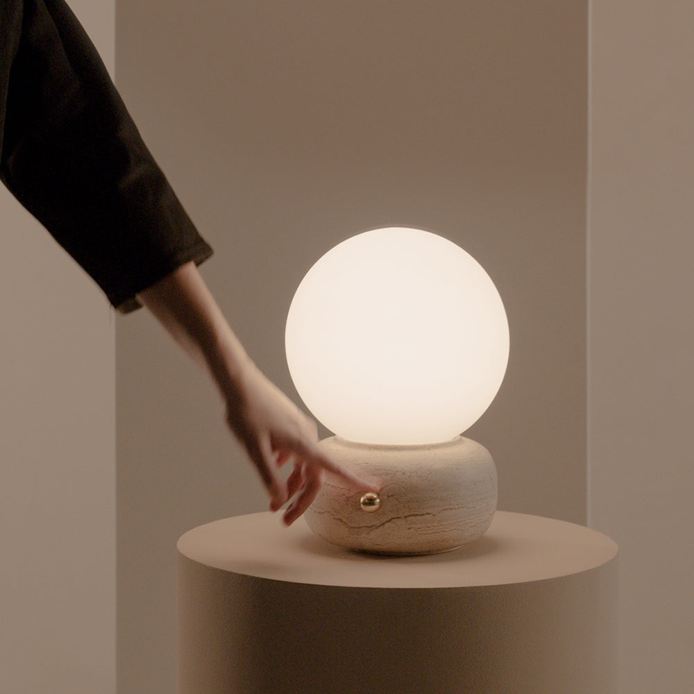 Material: Difusor de vidrio opal, base de mármol y aluminio
