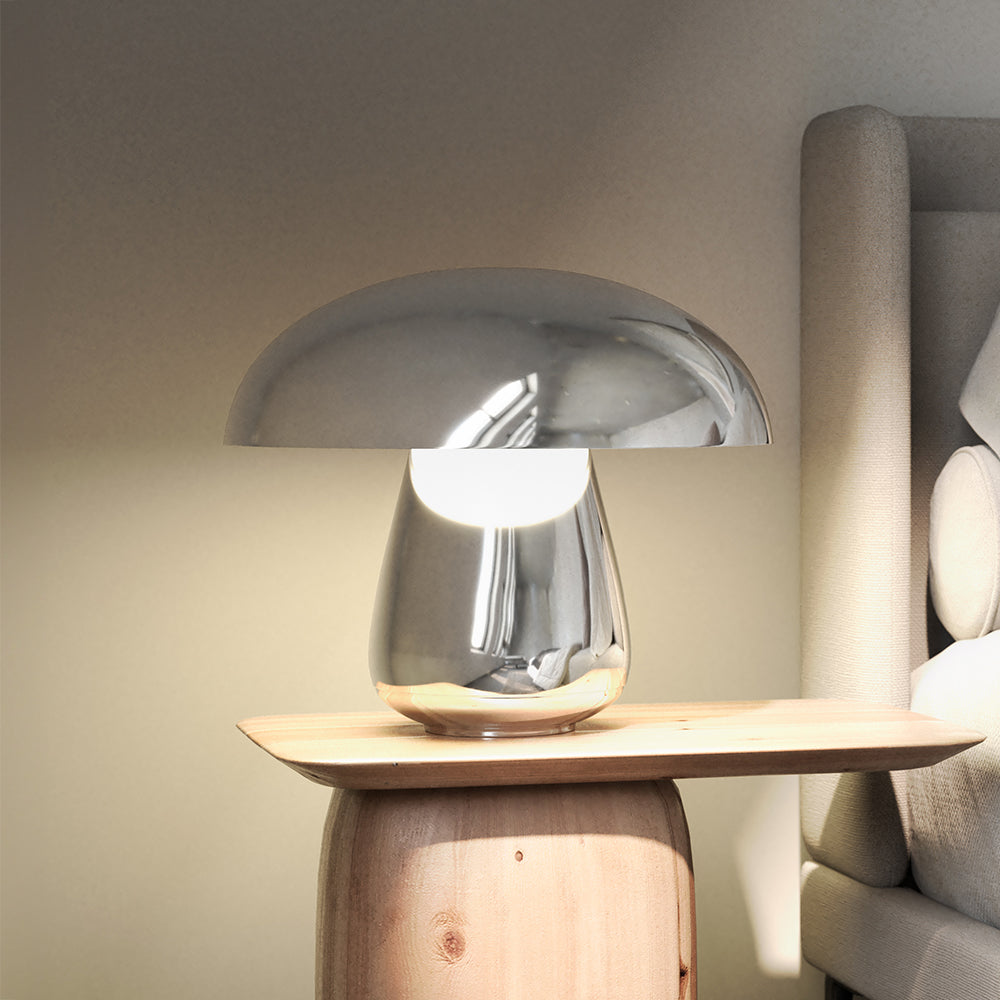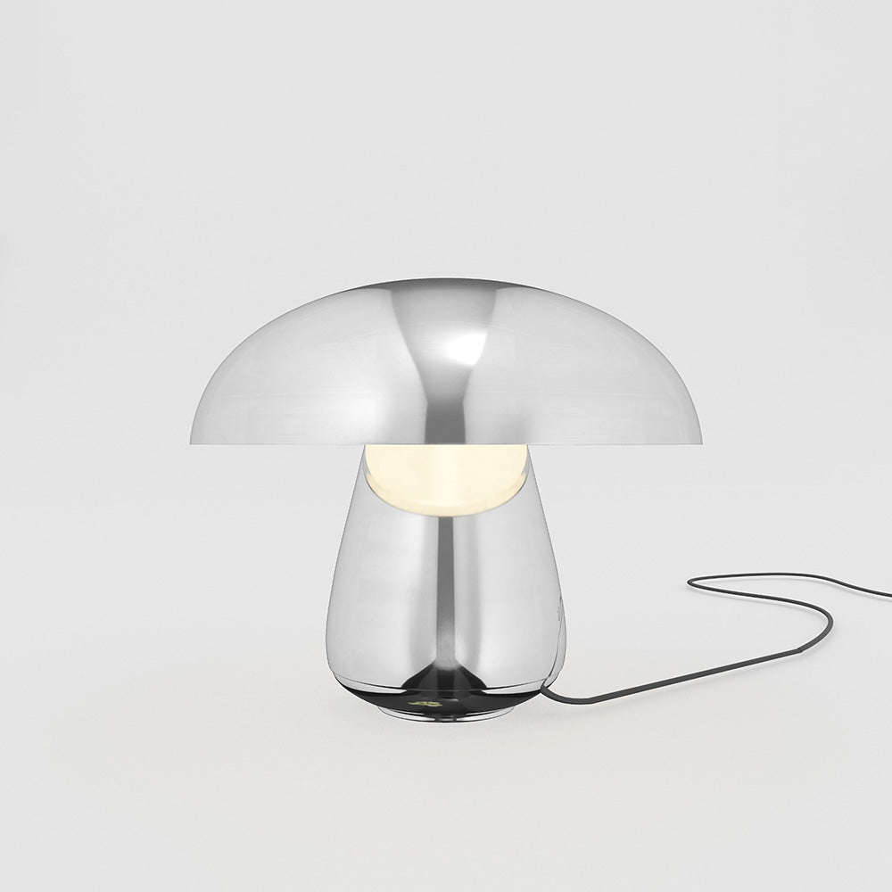 Material: Acero cromado y difusor de acrílico. Se enciende y apaga por un sensor táctil atenuable con 3 niveles de intensidad