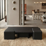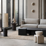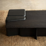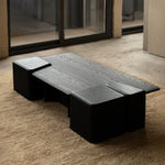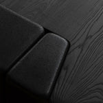 Material: Madera de fresno quemada en acabado café oscuro y piedra de recinto negro.